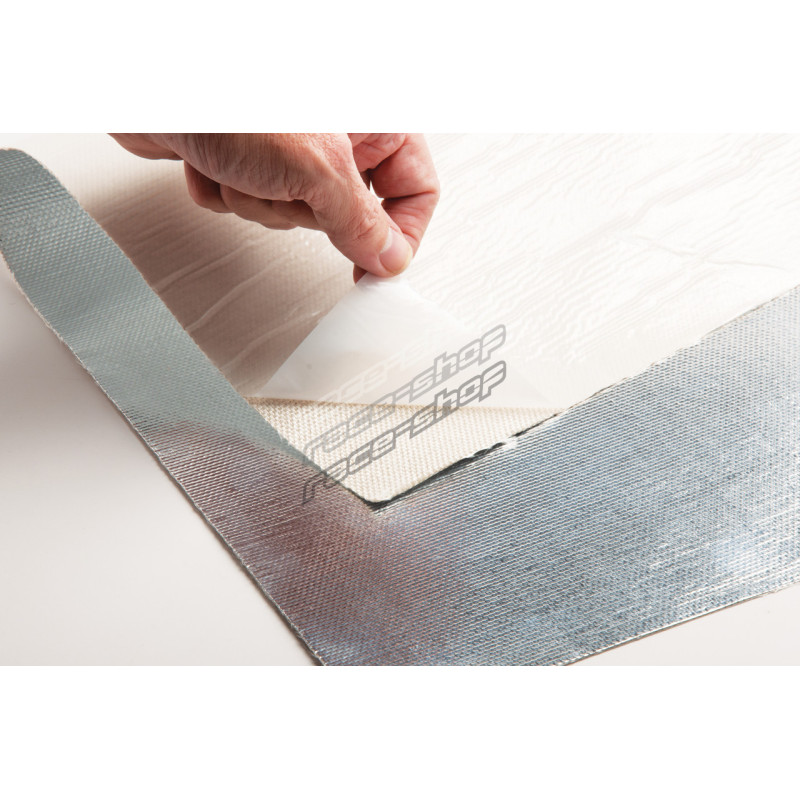 La barriera termica con supporto adesivo è costituita da silice intrecciata con una finitura flessibile in alluminio.. La superficie è in grado di sopportare temperature radianti fino a 1100°C. Il lato adesivo è in grado di gestire temperature dirette e continuative fino a 150°C. Il materiale composito con supporto adesivo può essere facilmente applicato a qualsiasi superficie o avvolto intorno a un tubo o a un filo per ottenere un aspetto professionale e pulito..