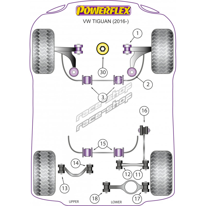 Powerflex Boccola del braccio longitudinale posteriore Volkswagen Tiguan (2016 - )