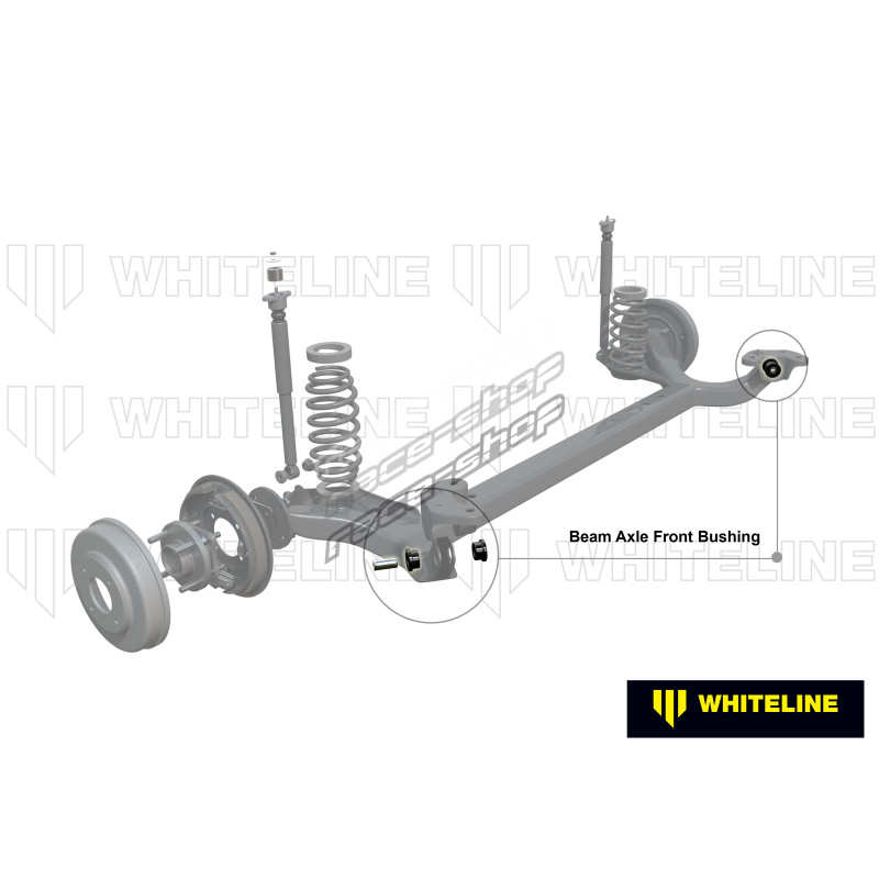 A critical rear end bushing for any front wheel drive vehicle as it absorbs all the cornering and braking energy. Over compliance leads to early wear and tear, especially in performance applications. Reduce rear end cornering squirm and improve braking efficiencies with the Whiteline beam axle kit.