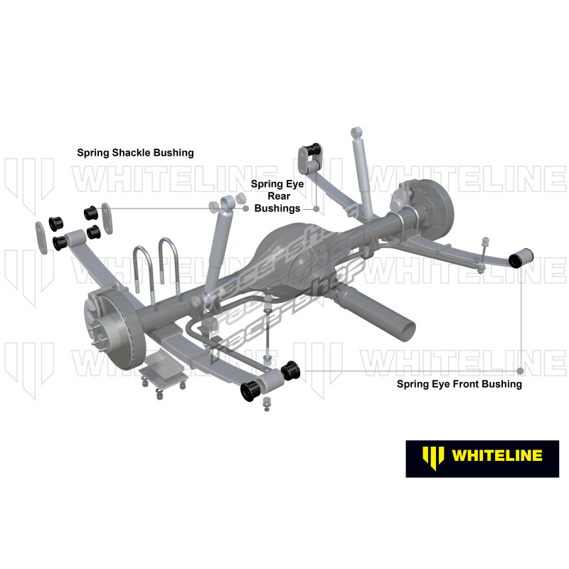 Kit completo di manutenzione per boccole a balestra, che comprende gli occhielli anteriori e posteriori della balestra e le boccole di fissaggio. Chilometraggi elevati e carichi pesanti causano un'usura eccessiva delle boccole in gomma. Le boccole nere distintive di Whiteline sono robuste e offrono un'eccezionale resistenza all'abrasione, un'elevata capacità di carico (4x4, utilitarie e traino), flessibilità, maggiore resistenza alla trazione e resistenza chimica a olio, grasso, ozono e agenti atmosferici.